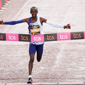 伦敦马拉松的赛道纪录为2小时02分37秒,由基普乔格在2019年创造。在出现降雨的不利参赛条件下,基普乔格的赛道纪录看起来遥不可及,但在30公里后,年轻的基普图姆果断发起进攻,甩开身后对手并越跑越快,最终以2小时01分25秒率先冲线,将赛道纪录提升了1分12秒。
