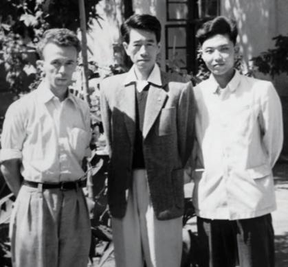 王逊(左二)与捷克留学生海兹拉尔、助教薄松年合影(1956年)