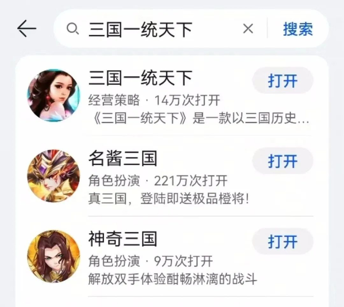 何女士验证后发现,华为手机自带的“应用市场”首页滚动条里确实有一款叫“三国·一统天下”的游戏,点击后无需下载,直接进入游戏界面。该游戏属于“应用市场”里的“快应用”,其和微信小程序一样,直接点开就能使用,是国内多家手机厂商基于硬件平台共同推出的新型应用生态。
