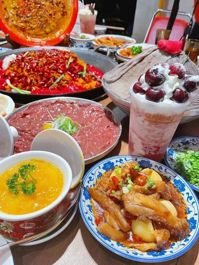 主打烧菜火锅,开创了苕皮煮火锅的神奇搭配,每一款特色菜品都很惊喜,很有记忆点。国潮风环境也很适合拍照打卡。