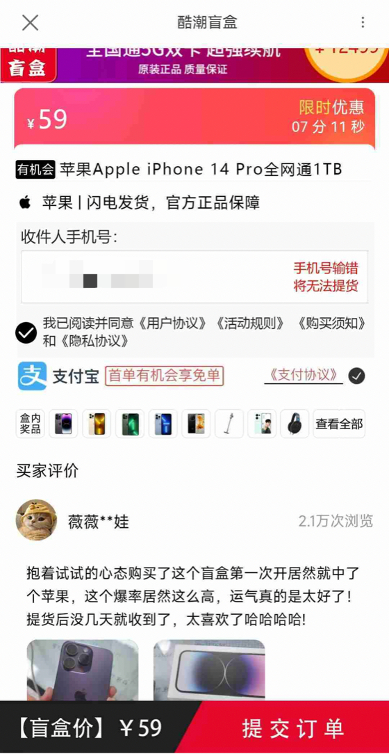 盲盒APP的连环套路,59元真的能抽中苹果手机吗?