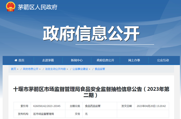 中国质量新闻网讯 近日,湖北省十堰市茅箭区市场监督管理局发布食品安全监督抽检信息公告(2023年第二期)。