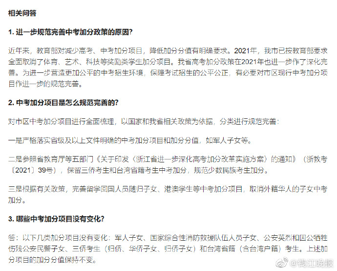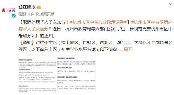 取消外籍华人子女加分!杭州市区中考加分政策调整