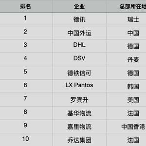 另外,海运货代榜单共有9家中国企业上榜,其中中国外运和嘉里物流分别位居海运货代榜第2名和第9名,环世物流排名第13位、华贸物流排名第14位。另有东方海外物流、嘉宏货运、鸿安船务、欧华国际、中菲行上榜。空运货代排名榜中,中国外运、嘉里物流、欧华国际、华贸物流、中菲行、环世物流、嘉宏货运等中国货代公司也分别上榜。