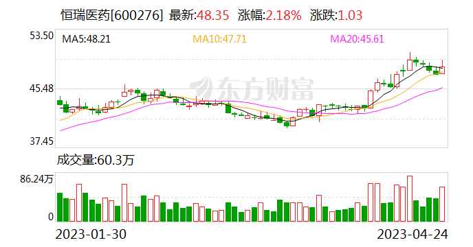 24日,恒瑞医药股价快速拉升,截至收盘,涨2.18%,报48.35元。经历了一年多的转型阵痛期后,恒瑞医药(600276.SH)的业绩在今年一季度止降回升,这是否意味着拐点已至?