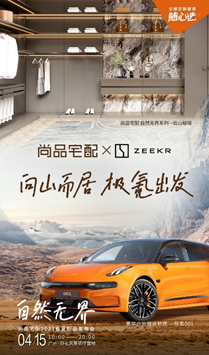 尚品宅配×极氪的组合,想象一幅以“云山“作为背景的画面,带有岩石纹样的家居配上橙色的极氪户外轿跑车,仿佛有一股不羁的山风迎面吹来。“向山而居极氪出发”的理念,则带出追求极致的共同气质,也构成了不断推陈出新的尚品宅配与用科技改变出行生活的极氪汽车跨界合作的基石。