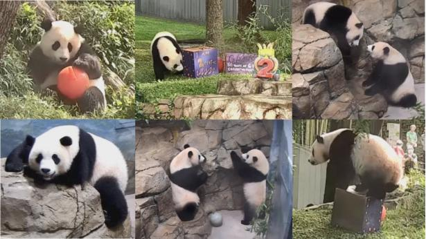 美国国家动物园有三只,分别是美香(24岁)、添添(25岁)和小奇迹(2岁),生活在亚特兰大动物园则是伦伦(25岁)、洋洋(25岁)、雅伦(6岁)和喜伦(6岁)。