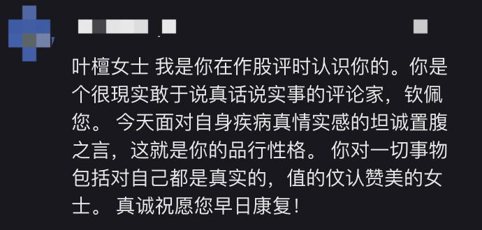 叶檀坦诚地和大家说,自己得了乳腺癌。