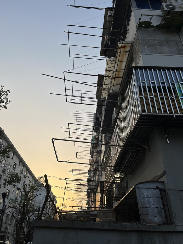 密集龙门架的背后,是上海老房屋住户的晾衣难题。