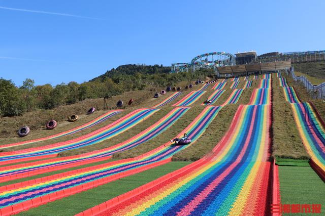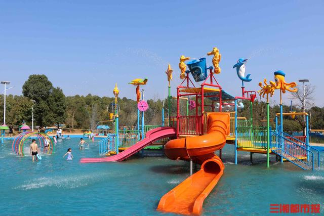 在花海里,除了赏花拍照,各类娱乐设施也给游客带来了惊险刺激:从高空彩色玻璃水滑道,乘着皮划艇飞驰而下;在花海之中泳池里嘻嘻玩闹;在树林间穿越吊桥,体验超级蹦床、高空网绳等项目,赏花赏景更赏心情。