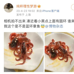 截至目前,这条微博已有8000多转发,其中知名科普博主@闪光鱵和@博物杂志也相继转发了这条并认证了这就是“蓝环章鱼”。