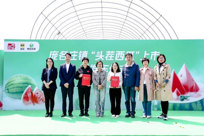 活动现场,庞各庄镇与美团买菜签署战略合作协议,双方将以庞各庄西瓜为代表,共同探索本地特色农产品与即时零售业态融合发展的新途径,提升庞各庄西瓜、庞各庄金把梨等“土特产”的市场竞争力和持续发展能力,助力本地农户提高收入。