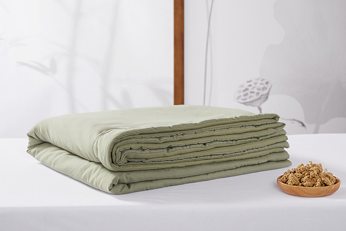 春夏潮湿易出汗,床上很容易滋生螨虫,而艾绒被“自带洁净力”。