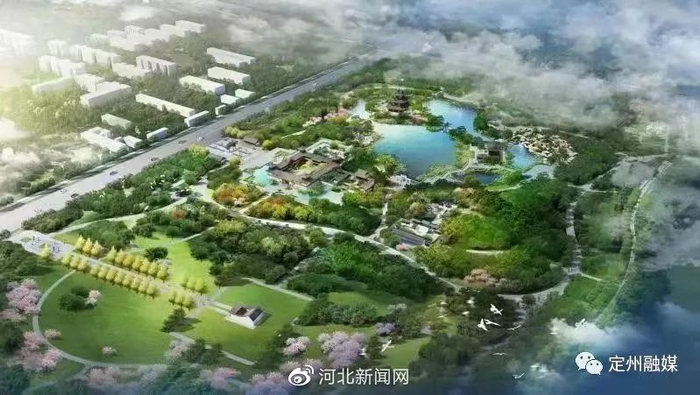 定州展园(已确定为众春园)位于定州市古城区,占地458.32亩,设计方案采取再建与复建结合的方式,再建宋式山水格局、宋式主体建筑,复建清式雪浪亭。历史上众春园是中国最早的公共园林,此次建设将以宋代韩琦《定州众春园记》反映的众春园格局及园林艺术为核心参考,主要景点包括韩苏祠、雪浪亭、驻春阁、清韵轩、熙然台、御书院、百花池、悠然山等,再现山水意境。