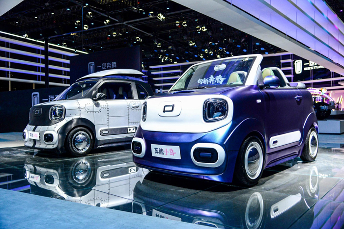 在此次车展上,一汽首款微型纯电小车正式命名为“奔腾小马”。据了解,这款小车由奔腾全球造型中心年轻的设计团队倾力打造,此次车展率先亮相三款改装车型。