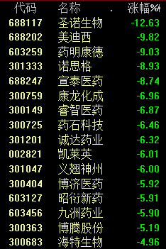 药明康德也带崩了CRO板块,圣诺生物跌超12%,美迪西跌超9%。