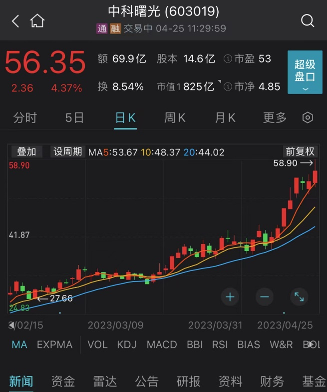 今天上午,算力股表现活跃,中科曙光上涨4.37%,盘中股价创历史新高。海光信息涨超7%,龙芯中科涨超9%。