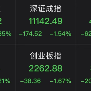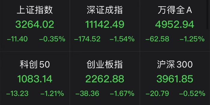 截至收盘,上证指数下跌0.35%,深证成指下跌1.54%,创业板指下跌1.67%。逾4300只个股下跌,创业板指创今年以来新低,上午A股也跌上热搜。