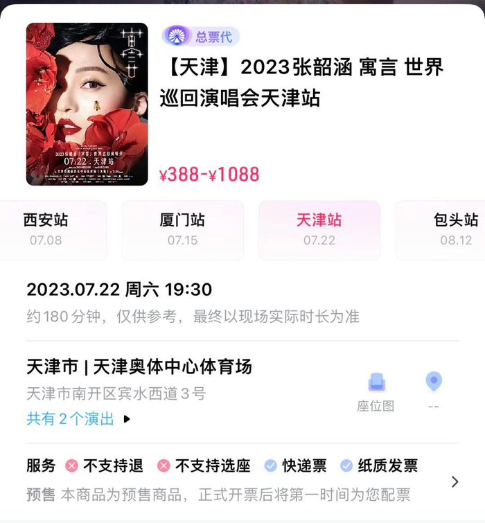 刚才说到的李荣浩、华晨宇、张杰在全国多地已开票。