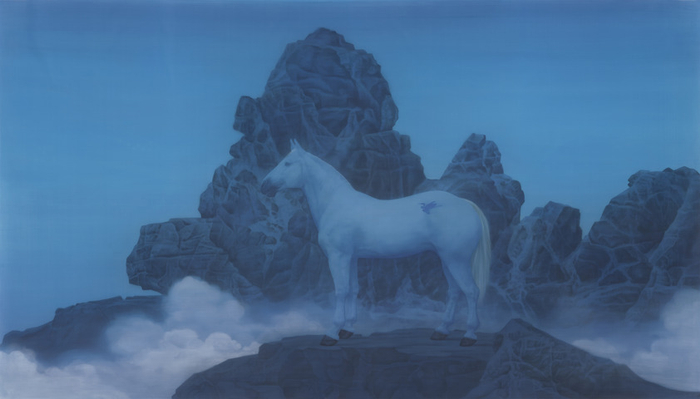 中国传统美学中的“对仗”也给予了徐累创作灵感。“受过中国文化熏陶的人,都知道我们文化当中有一种非常奇妙的修辞学,就是对仗,”他说,“这时刻提醒我们,在这个世界当中,我们所处的位置要平衡两个极端,这是中国人处事的态度和世界观。”古今、东西的平衡与并置于是成为他的另外一个重要创作主题,在“浮生-时间的平行”这一单元呈现。