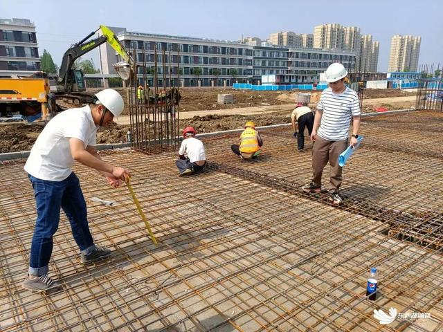 新沟镇街燕岭社区附近的新沟镇体育公园项目现场就已经忙碌起来,现场五台挖土机同时作业,施工运输车来回穿梭,50余名建筑工人忙着装模板、捆钢筋,轰鸣声、敲打声交织作响。