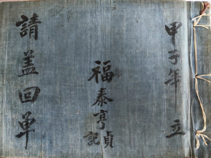 这本交换账簿记录了甲子年(1924年2月至1925年1月)间该金号的黄金实物、对外重要凭证等的交付签收,封面上特别写下“请盖回单”。