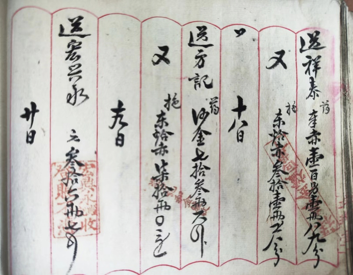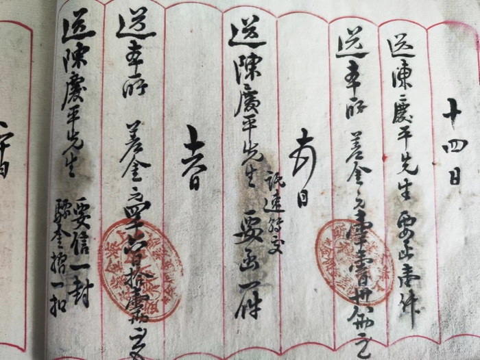 在福泰亨的交换账本中,我们可以看到给客户陈庆平、施再春、曾焕堂等发送“标金手折”及对方盖章确认的记录,写作“骠金折”“交易折”。也有给这些客户的要函,对应福泰亨档案中的客户交易来函,这些要函应该是交易确认和账单。