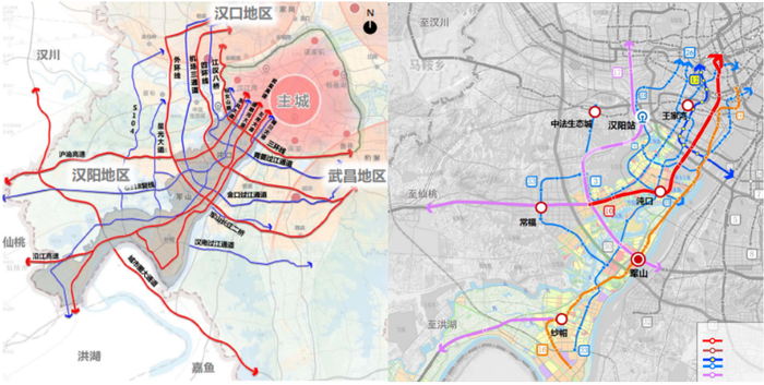 目前轨道交通3、6号线、16号线3条地铁和1条T1有轨电车建成通车已经在区域内运行;而且规划在内的高速轨道包括10号线、17/30号线、仙桃市域铁路、洪湖市域铁路;快速轨道为16号线;普速轨道包括3号线、6号线、23号线、26号线、33号线。