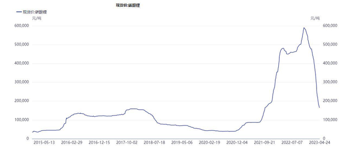 由以上分析可以发现,锂在整个锂电池产业链中的地位至关重要,在多个环节中均有涉及。然而,锂价自去年年底开始掉头往下,从高点的60万/吨,到目前的18万/吨,已经逼近成本线,甚至有业内人士称价格会降到10元/吨。