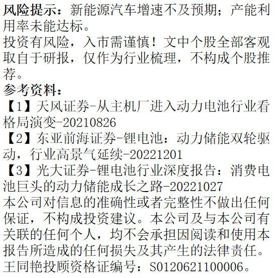 电芯:宁德时代、LG、欣旺达、国轩高科、亿纬锂能、孚能科技、杉杉股份、鹏辉能源等;