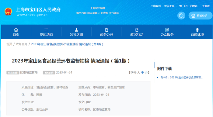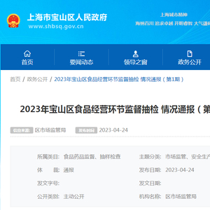 上海市宝山区市场监管局通报2023年第1期餐饮食品环节监督抽检情况