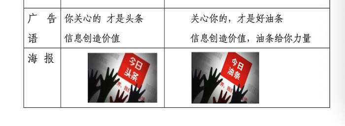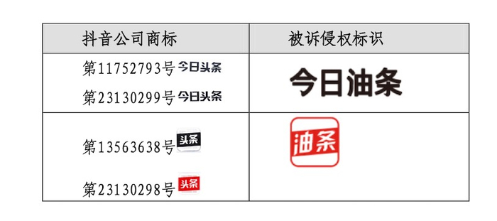 对于抖音公司诉请的“不正当竞争”,一审法院也不予支持。判决书认为,“今日油条”公司及早餐店的字号是“今日油条”而不是“今日头条”,二者差异明显;“今日头条”APP界面红色底色、白色搜索框的样式,并非其独创,不能为抖音公司独占使用;“你关心的,才是头条”与“关心你的,才是好油条”等广告语及海报不会造成相关公众混淆,抖音未举证其广告语和海报的独创性,以及与抖音公司形成一一对应的紧密联系,所以,抖音不能获得排他使用的权利。