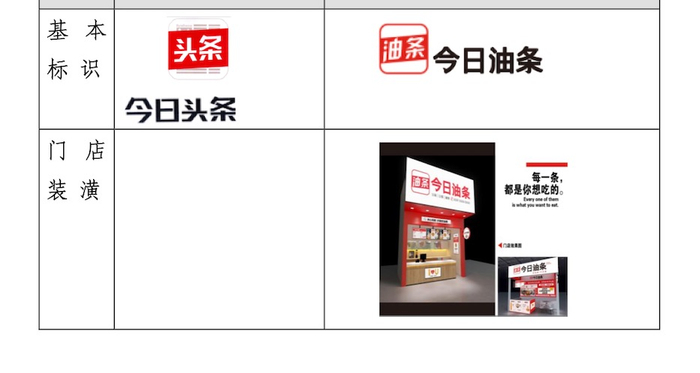 今日头条起诉称,“今日油条”在门头招牌、店内装潢、菜单、食品包装、员工服装、广告以及宣传材料等多处使用的标识,与“今日头条”在文字构成、整体外观及读音等方面高度近似,已构成对抖音公司驰名商标的复制、模仿。“今日油条”的广告语“关心你的,才是好油条”、“信息创造价值,油条给你力量”,抄袭、模仿和攀附“今日头条”。“今日油条”作为企业字号注册并使用,与今日头条商标高度近似,易使相关公众误认为其与抖音公司之间存在关联关系、许可关系或其他特定联系,侵害了抖音公司注册商标合法权益,构成不正当竞争。