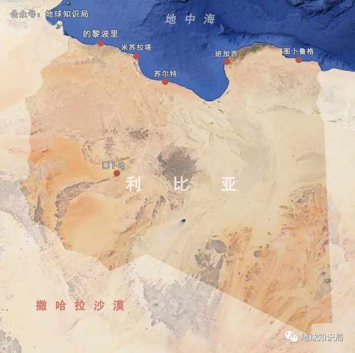 利比亚位于地中海南岸的北非,国土面积约176万平方公里,排名世界第16位。虽然面积相当于52个海南岛,也拥有狭长的海岸线,但是90%以上的国土都被沙漠和半沙漠覆盖,既没有常年河流,天然湖泊也很少,地表水资源十分有限。