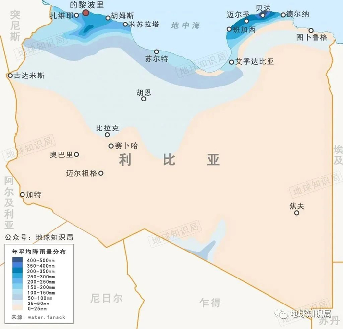 一种是来自降水和地表径流的可再生浅层含水层,主要分布在北部的Jiffarah平原系统、Jabal al Akhdar地区和Al-Hamada al-Hamra高原。