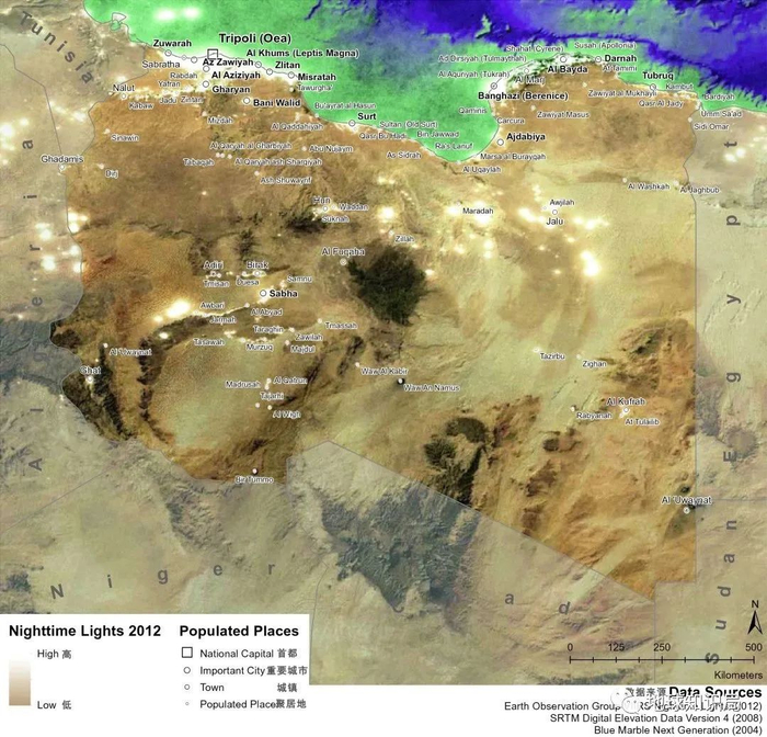 (利比亚夜间灯光图 图:Across the Vast Land)▼