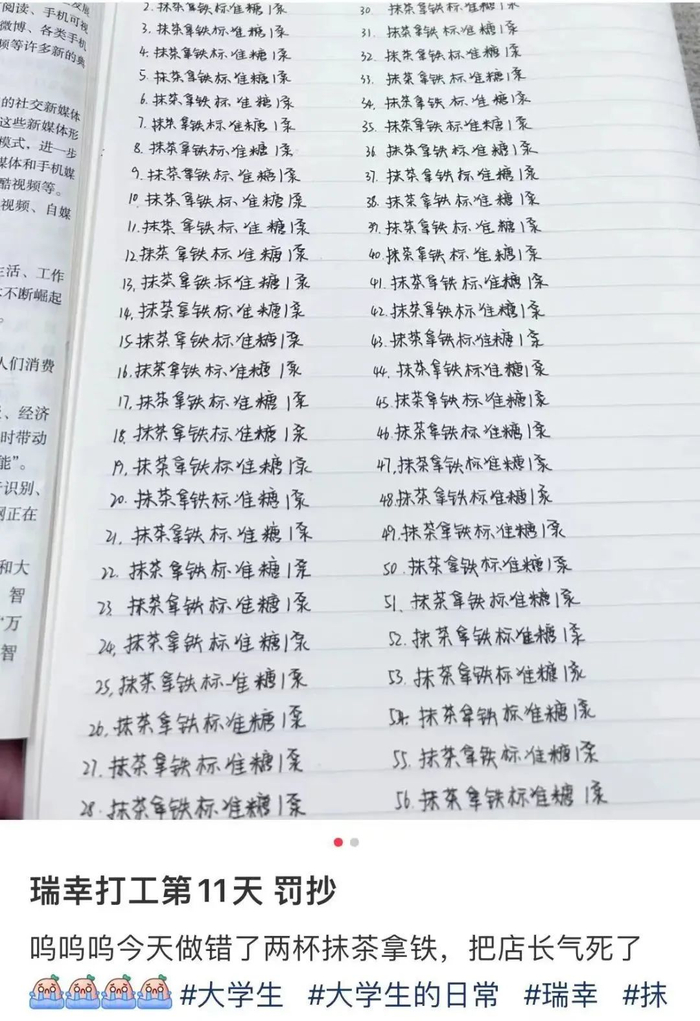 #瑞幸罚抄算体罚吗#