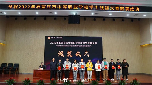 经过一天的激烈角逐,最终石家庄电子信息学校1队、石家庄财经商贸学校2队获得团体一等奖,石家庄财经商贸学校1队、石家庄电子信息学校2队、石家庄文化传媒学校2队、石家庄市东华铁路中等专业学校1队、石家庄技师学院1队获得团体二等奖,石家庄文化传媒学校1队、石家庄市东华铁路中等专业学校2队、石家庄太行科技中等专业学校1队、平山职业教育中心、石家庄技师学院2队、石家庄太行科技中等专业学校2队、石家庄现代农业学校1队获得团体三等奖。石家庄文化传媒学校荣获优秀承办单位。