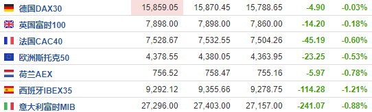 正在交易中的欧洲市场多数走低,截至发稿,德国DAX30指数跌0.03%,英国富时100指数跌0.18%,法国CAC40指数跌0.60%。