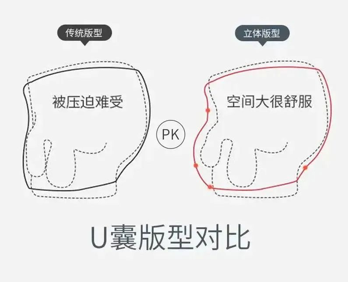 2、3D凸起式囊袋,更大空间,双层轻薄内裆,守护健康;
