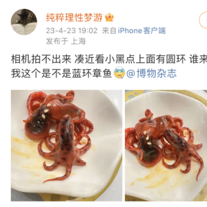 不少网友表示,第一次看到熟了的蓝环章鱼: