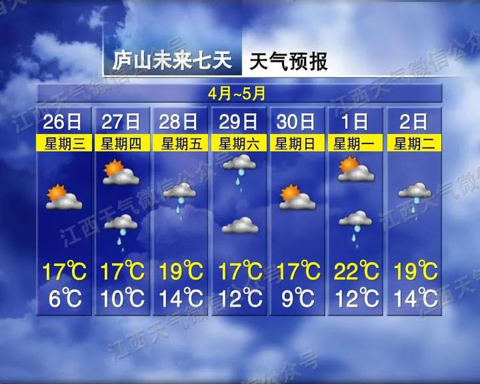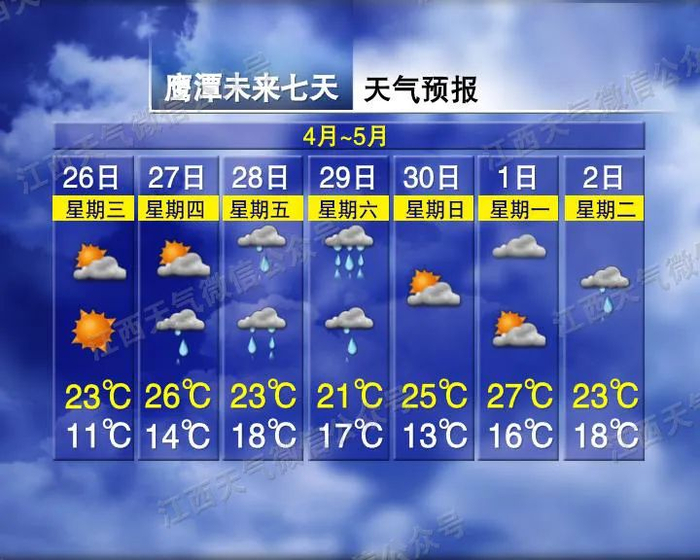 白天赣北、赣中西部多云转阴有阵雨或雷阵雨,部分地区有中雨;全省其他地区多云间阴天。晚上赣北和赣中西部阴有小到中雨或雷雨,局部地区有大到暴雨;全省其他地区以阴天为主。