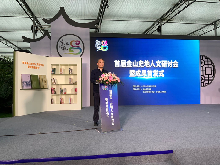 沈金龙在致辞中充分肯定了举办“首届金山史地人文研讨会暨成果首发式”的重要意义。他强调,金山是上海最早成陆、最早有先民憩息、最早有行政建置的地方,6400余年的发展史奠定了这片土地深厚的历史文化底蕴,相信通过学术研究推进区域历史文化资源和文旅元素的整合与修缮、保护与开发、利用与发展,一定能够在新时代新征程上进一步厚植金山地域文化、凝炼金山城市精神,为打响“上海湾区”城市品牌塑形铸魂。