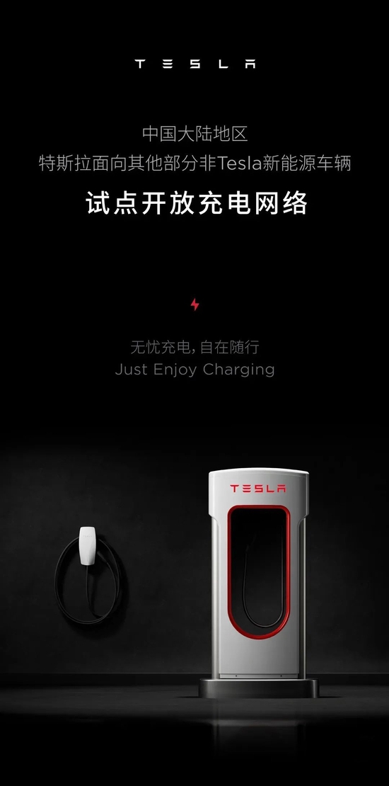 在“五一”假期出行高峰到来前,特斯拉宣布了一则补能方面的大消息。4月25日,特斯拉官方宣布,正式在中国大陆地区面向部分非特斯拉品牌新能源车辆试点开放充电站。