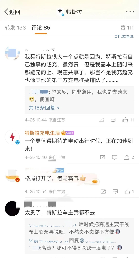 而对于试点开放充电网络,特斯拉老车主们评价并不一致。“太贵了,我一个特斯拉车主都没兴趣往超充走,除非有免费充电。”有车主在特斯拉官方微博下留言。还有网友认为,降低充电价格能更快提高充电桩使用率。记者了解到,目前特斯拉超充均价约为1.8元/度电,部分地区大于2元/度电。