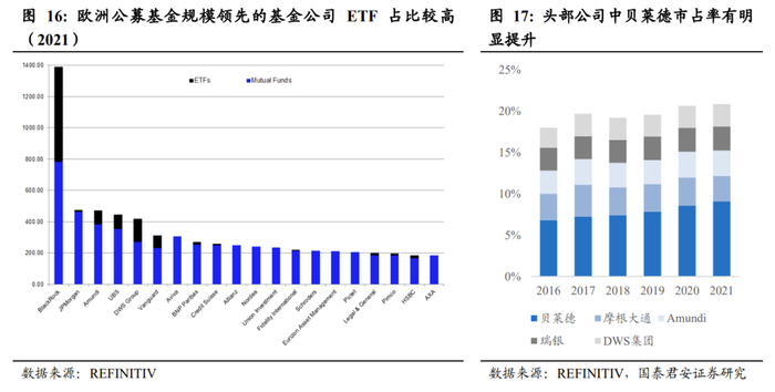 3.1. 欧洲头部基金公司通过提供ETF产品扩大优势,机构客户占比的提升降低了渠道优势