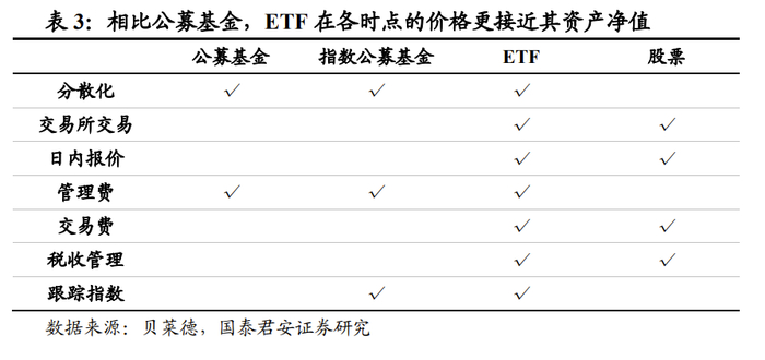 ETF产品的优势在于更好地满足了机构投资者提升投资收益的需求。1)头部基金公司的客户结构以机构客户为主,通过为机构客户提供公募基金满足其提高收益的需求。2021年,贝莱德的机构客户占其AUM的57%;2022年,东方汇理的保险公司和机构客户占其AUM比重的59%。2)通过ETF投资美股,相对于主动型基金和指数型公募基金均更具优势。首先,相对于主动型基金,美股市场有效性较强,指数投资长期收益优于主动。据统计,美国大部分主动型基金长期无法跑赢其基准指数。其次,ETF相对指数公募基金更具流动性。不同于指数公募基金每天更新净值,ETF在交易所交易,全天经历价格变化,其各时点的价格均能更好地反应其资产净值,可以随时变现避免重大损失。