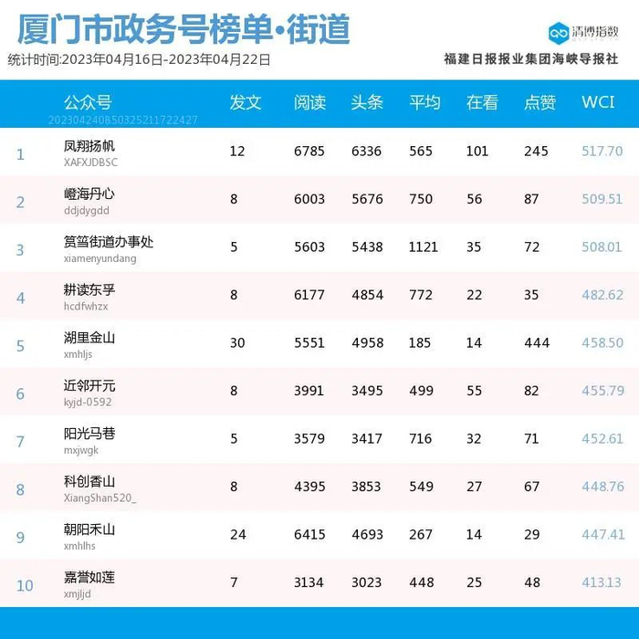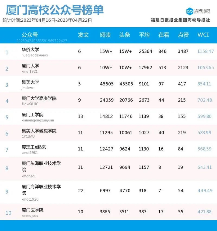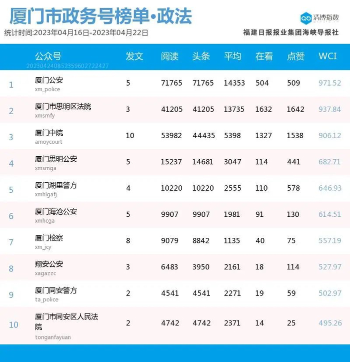 强势回归!厦门微信公众号影响力排行榜2023年第16期来了!