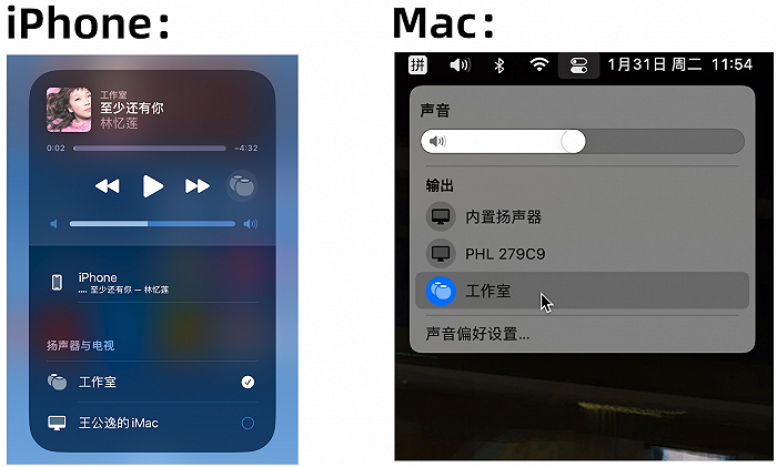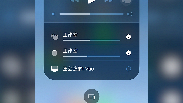 而不管是iPad、iMac、iPhone,作为同一生态下的产品,都可在控制中心内切换到HomePod的播放,体验相当便捷。
