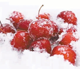 冻过的海棠,就像冻过的柿子一样,苦涩全无,还浓缩了一股略带发酵味儿的果香。冻海棠很硬,要想吃冻海棠,需先放进凉的清水里解冻才行,这个过程北京人叫做“拔”:捧上一把冻海棠,放进凉水里,冰会渐渐融化,冻海棠缓缓化成艳红透亮的果子,带着冰碴儿放进嘴里含住,感觉像含了冰球,一口咬下去,舌头上甜丝丝的,身上觉得透心儿凉,牙齿和太阳穴都冰得发紧,脑子也清醒了不少,真是一种奇妙的品尝体验。